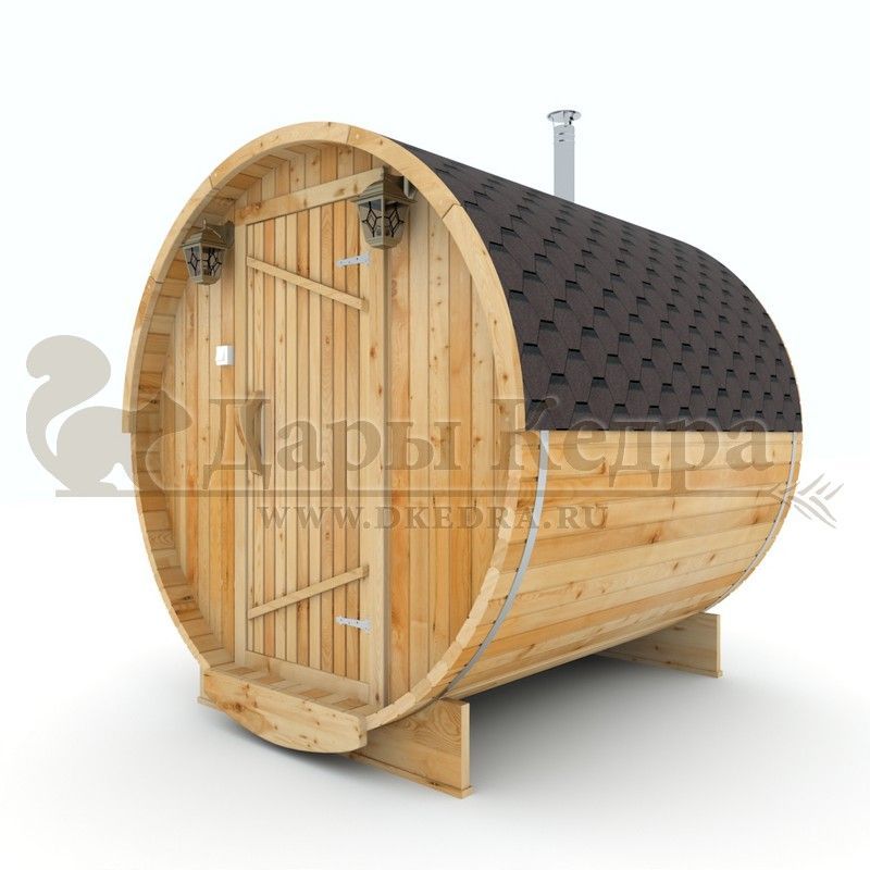 • Баня-бочка круглая из кедра 2 метра Это изделие круглой вытянутой формы с одним парильным отделением. Внутреннее пространство включает в себя печь у дальней стены и лавки из кедра по обе стороны бани. За счет компактной формы баня нагревается в течение 30 минут. По вашему желанию ее можно укомплектовать козырьком, верандой и печью с внешней загрузкой, благодаря которой весь мусор после топки остается на улице. Круглая баня-бочка не требует полноценный фундамент, поэтому при необходимости ее можно перенести в другое место. Обращаем Ваше внимание, что в стандартную комплектацию бани входят лавки в парной с обеих сторон. Дополнительно можно заказать полок открытого или закрытого типа! Кедр обладает ароматическими свойствами. Он не деформируется и влагоустойчив, при правильном уходе за деревом на нем не развиваются грибки и плесень.