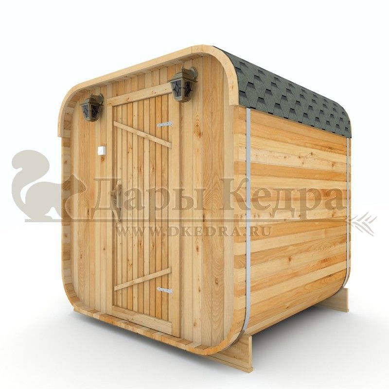 • Баня-бочка квадро из кедра 2 метра Это квадратное изделие с закругленными углами. За счет такой конструкции во время топки воздух циркулирует по кругу, поэтому баня-бочка нагревается не более 30 минут. Баня имеет одно парильное отделение. Внутри по обе стороны расположены лавочки из кедра, печь установлена между ними у дальней стены. По вашему желанию баню-бочку квадро можно укомплектовать козырьком, верандой и печью с внешней загрузкой, благодаря которой весь мусор после топки остается на улице. Баня-бочка квадро не требует полноценный фундамент, поэтому при необходимости ее можно перенести в другое место. Обращаем Ваше внимание, что в стандартную комплектацию бани входят лавки в парной с обеих сторон. Дополнительно можно заказать полок открытого или закрытого типа! Кедр обладает ароматическими свойствами. Он не деформируется и влагоустойчив, при правильном уходе за деревом на нем не развиваются грибки и плесень. Обращаем Ваше внимание, что данную модель бани-бочки можно изготовить с ровным полом. Эта дополнительная опция и оплачивается отдельно!