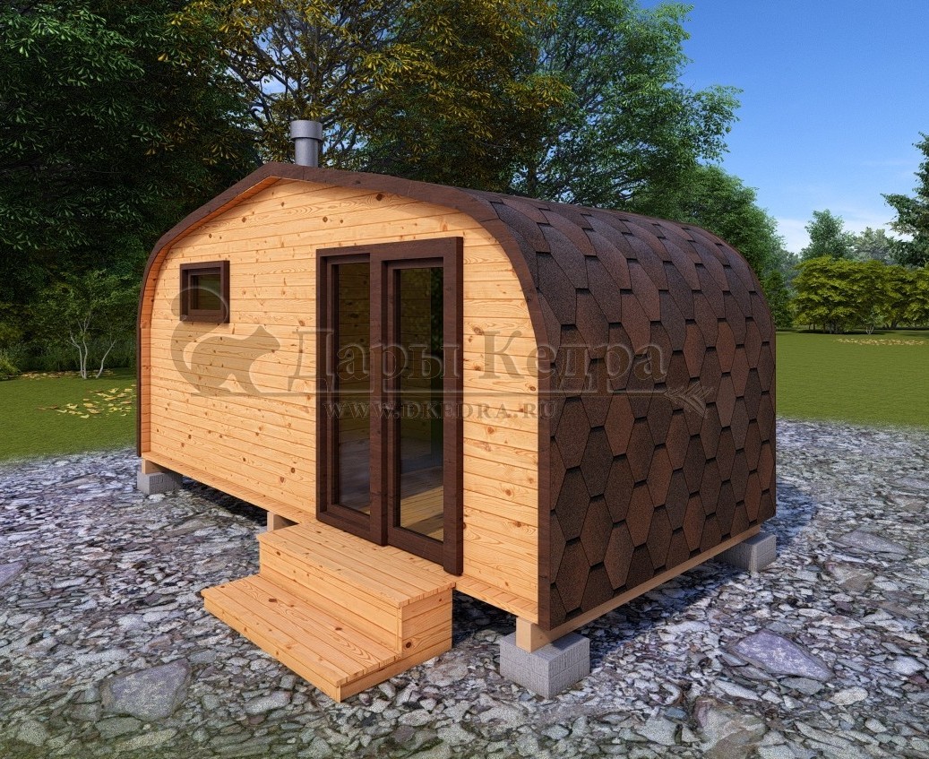 Нравится именно эта модель бани-буханки, просторная и парит хорошо! Мы заказывали с изменением цвета, смотрится достойно. Спасибо за консультацию специалистов компании Дары Кедра и за качественное изделие!