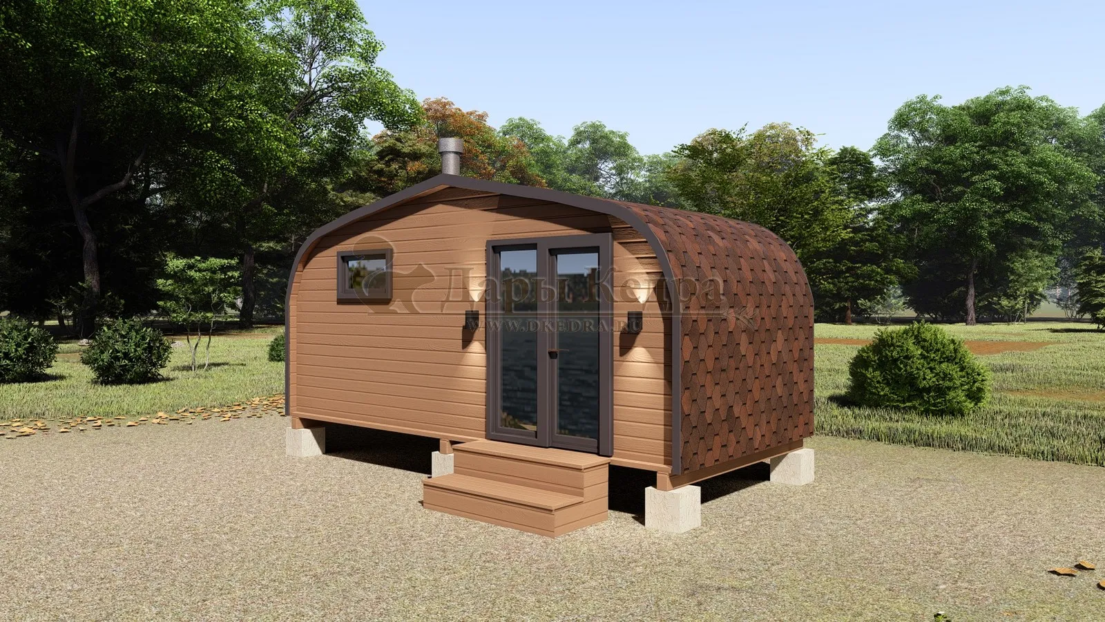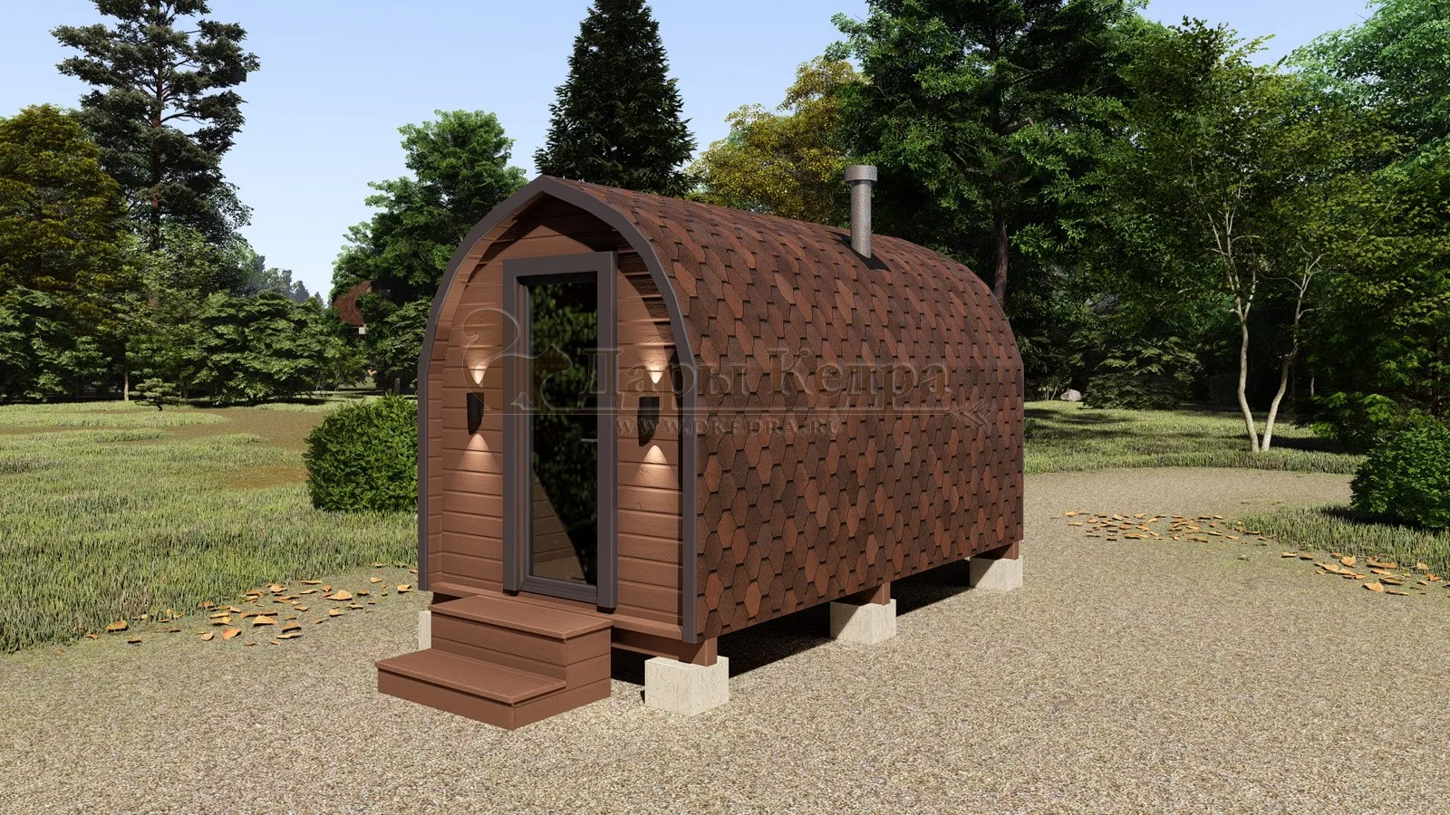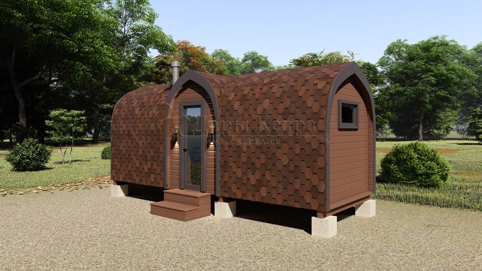 Симбиоз круглой и квадратной бани-бочки. Разработано с учётом эргономики, в ней так же просторно, как и в квадро-бочке, но при этом полукруглая крыша не дает задерживаться снегу и влаге на кровле. А еще такая баня безусловно красивая, мобильная и доступная каждому!