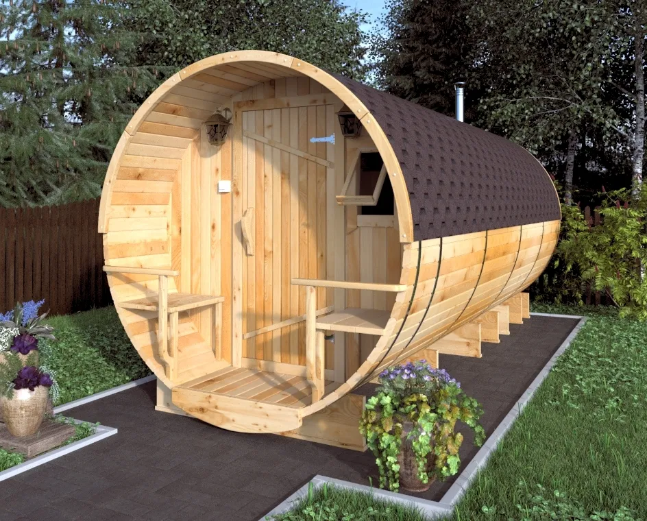 Овальная форма бани-бочки - новинка на рынке банной продукции. За счет оригинального дизайна формат такой парилки получил одобрение среди загородных спа-центров, банных комплексов и, конечно, дачников и владельцев частных усадеб.