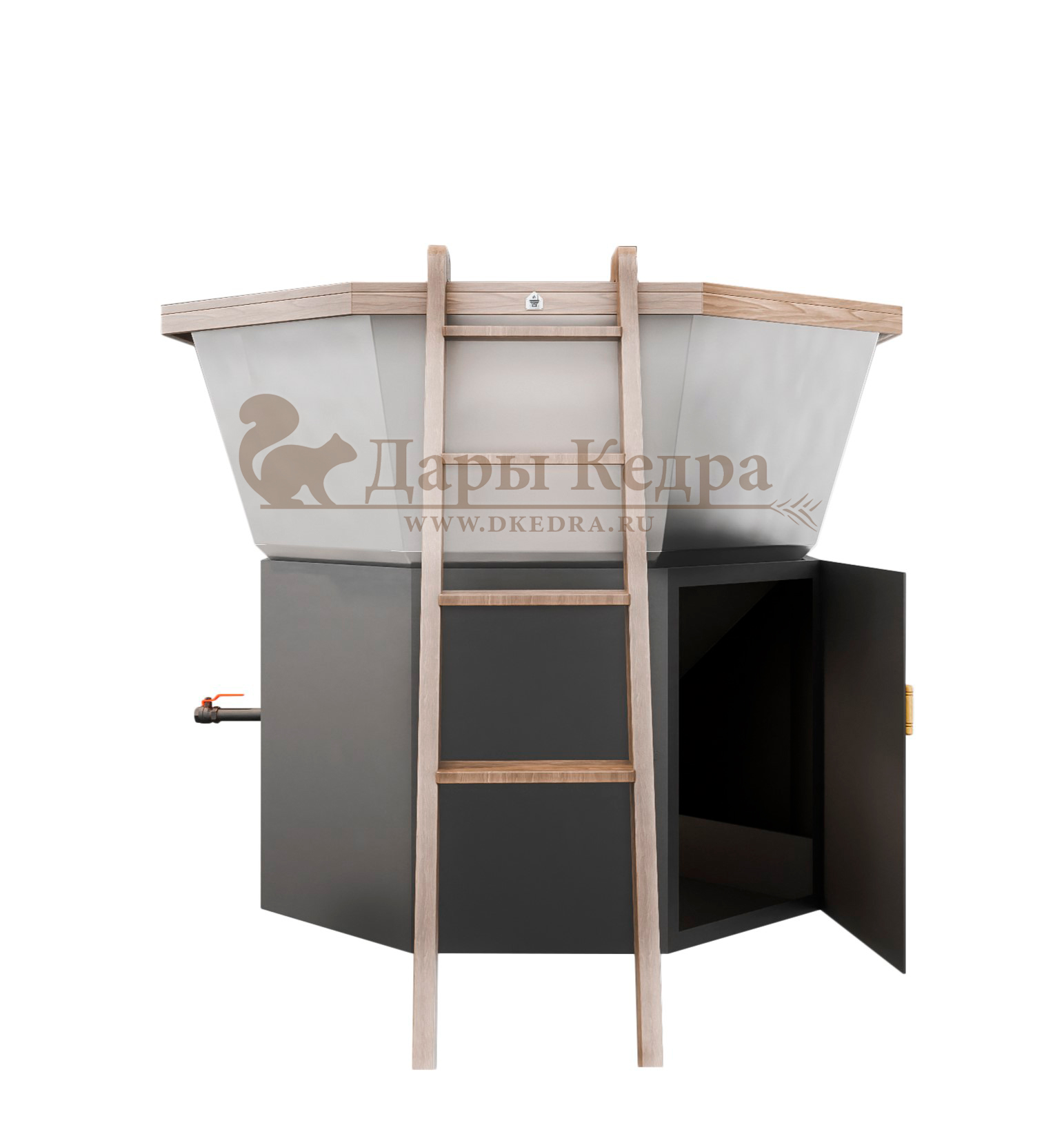 Прочная и удобная лестница из кедра позволит комфортно подниматься и погружаться в воду (5 ступеней и площадка).